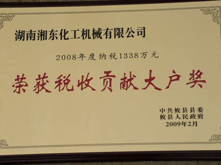 2008年湖南湘東化工機(jī)械有限公司實(shí)現(xiàn)產(chǎn)值3.5億元,上繳稅收1338萬(wàn)元,全年投入技改1300萬(wàn)元,防焊接變形的內(nèi)撐圓工裝等3項(xiàng)獲得國(guó)家專利,兩類產(chǎn)品注冊(cè)商標(biāo)被評(píng)為湖南省著名商標(biāo)。(尹雄劍)