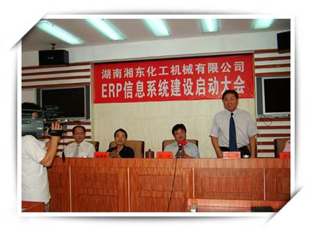 2007-06-29 為有效促進企業(yè)管理的現(xiàn)代化、科學化,進一步提升公司的綜合競爭力,湖南湘東化工機械有限公司于去年啟動了ERP系統(tǒng)的前期準備工作,今天上午,根據(jù)ERP項目的進展情況,正式啟動ERP信息系統(tǒng)建設。 ERP(企業(yè)資源規(guī)劃)是一種企業(yè)全新管理理念和管理工具,強調(diào)對企業(yè)的內(nèi)部甚至外部的資源進行優(yōu)化配置,提高利用效率。此次我公司斥資300多萬,首期投資150萬元,進行信息化建設,依照“整體規(guī)劃,分布實施,重點突破,效益驅(qū)動”的原則,分階段、按步驟地實施財務、物流、人力資源、生產(chǎn)管理、物料需求計劃等核心模塊建設,對企業(yè)管理進行流程梳理,促進公司經(jīng)濟效益的最大化。圖為和佳軟件公司陳佳總經(jīng)理不遠千里從北京總部蒞臨我公司出席啟動儀式。