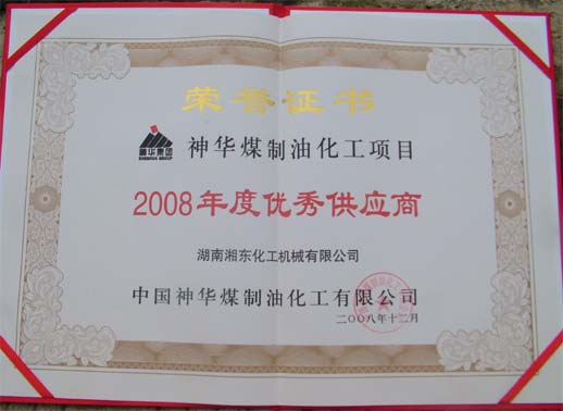 5月25日,從北京中國神華集團傳來喜訊,我公司獲得中國神華煤制油化工項目2008年度“優(yōu)秀供應(yīng)商”稱號。