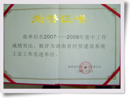 5月25日,從湖南省經(jīng)貿(mào)建設(shè)系統(tǒng)第六次工會工作大會上獲悉,公司工會被評為“2008年度湖南省經(jīng)貿(mào)建設(shè)系統(tǒng)工會工作先進(jìn)單位”。