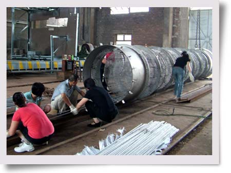 湖南湘東化工機(jī)械有限公司為天津渤;び邢挢(zé)任公司天津堿廠制造的煤氣換熱器等8臺設(shè)備,由于焊接技術(shù)要求高,焊接工作量是平常焊接的2.5倍,而且2萬根鋼管要穿,4萬個鋼管口要焊接,時間緊任務(wù)重,于2009年8月14日開始,公司上下齊心協(xié)力搶任務(wù),全體機(jī)關(guān)人員分批下車間穿管子,做到本職工作和生產(chǎn)任務(wù)兩不誤。