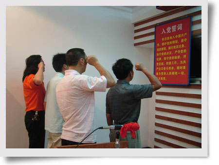 7月1日下午,湖南湘東化工機(jī)械有限公司舉行新黨員入黨宣誓儀式,新黨員在黨旗下莊嚴(yán)宣誓,“我志愿加入中國(guó)共產(chǎn)黨。。。。。。”。目前,湘東化機(jī)共有黨員598人,其中,具備大專以上文化黨員136人,生產(chǎn)一線黨員110人。 湘東化機(jī)始終把基層黨組織建設(shè)作為組織工作重點(diǎn),圍繞“深入學(xué)習(xí)實(shí)踐科學(xué)發(fā)展觀,為黨旗增輝,促進(jìn)公司又好又快發(fā)展”這一主題,以慶祝黨的生日為契機(jī),組織開(kāi)展 “爭(zhēng)先創(chuàng)優(yōu)”等形式多樣的活動(dòng),鼓勵(lì)廣大黨員積極投身于公司的各項(xiàng)工作,進(jìn)一步形成學(xué)榜樣、趕先進(jìn)的濃厚氛圍。 在新黨員入黨宣誓大會(huì)上,廣大黨員表示:要牢記黨的宗旨,保持共產(chǎn)黨員先進(jìn)性,繼承和發(fā)揚(yáng)黨的優(yōu)良傳統(tǒng)和作風(fēng),不斷提高自身的思想覺(jué)悟,團(tuán)結(jié)一心,努力工作,更好地發(fā)揮黨員的先鋒模范作用,為創(chuàng)造公司美好的明天而奮斗。湘東化機(jī)黨委書記林德晃殷切希望廣大黨員要時(shí)時(shí)刻刻嚴(yán)格要求自己,刻苦學(xué)習(xí),愛(ài)崗敬業(yè),積極進(jìn)取,甘于奉獻(xiàn),以滿腔的熱血,付諸于積極行動(dòng),為企業(yè)的建設(shè)發(fā)展努力奮斗,以自己無(wú)悔的青春向黨組織交上一份滿意的答卷。(王慧卉)