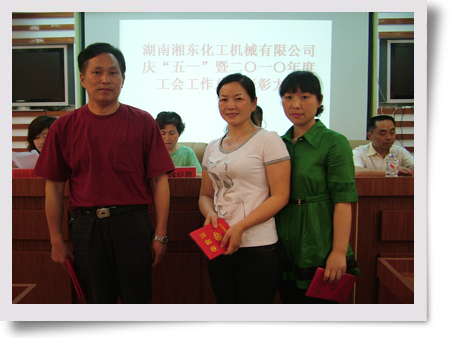 4月28日下午,湖南湘東化工機械有限公司召開2010年度工會工作總結(jié)表彰大會。公司副總經(jīng)理、工會負責人姜衡陽作了題為《履行職能、切實維權(quán)、努力開創(chuàng)工會工作新局面》的工作報告,慶祝五一國際勞動節(jié)的到來。 會上姜衡陽說,2010年度,工會在公司黨委的正確領(lǐng)導下,圍繞公司生產(chǎn)經(jīng)營目標,以民主管理為重點,依法維護職工合法權(quán)益,積極履行工會職能,充分發(fā)揮了工會組織作為黨政聯(lián)系職工群眾的橋梁和紐帶作用。尤其是關(guān)心員工工作落實到了實處:全年共慰問員工的病、婚、喪等事項119人次,慰問金2.27萬元;實施困難幫扶249名人次,發(fā)放春節(jié)送溫暖資金和物資16萬元;為12人大病救助1.6萬元;為743名員工繳納醫(yī)療互助補充保險金3.56萬元;為536名女職工購買“兩癌”保險金1.07萬元;對432戶城鎮(zhèn)獨生子女家庭進行了摸底登記;夏季堅持兩個多月每晚送清涼飲料慰問一線加班人員;號召全體員工發(fā)揚人道主義精神,為四川玉樹災(zāi)區(qū)捐款1.74萬元;關(guān)心勞模的生活,組織勞模及其家屬出境外旅游;認真做好勞動爭議調(diào)解、勞動能力鑒定工作;開展游藝、 趣味接力賽、撥河比賽等豐富多彩的文體活動,增強員工身心健康和員工隊伍的凝聚力;利用宣傳櫥窗對涉及員工切身利益的事項堅持企務(wù)公開。 同時,姜衡陽要求工會組織在新的一年以科學發(fā)展觀為指導,進一步解放思想,勵精圖治,奮發(fā)圖強,把工會工作提高到一個新的水平,為公司和諧發(fā)展作出更大的貢獻。 最后,大會對先進集體和先進個人進行了表彰。(王慧卉)